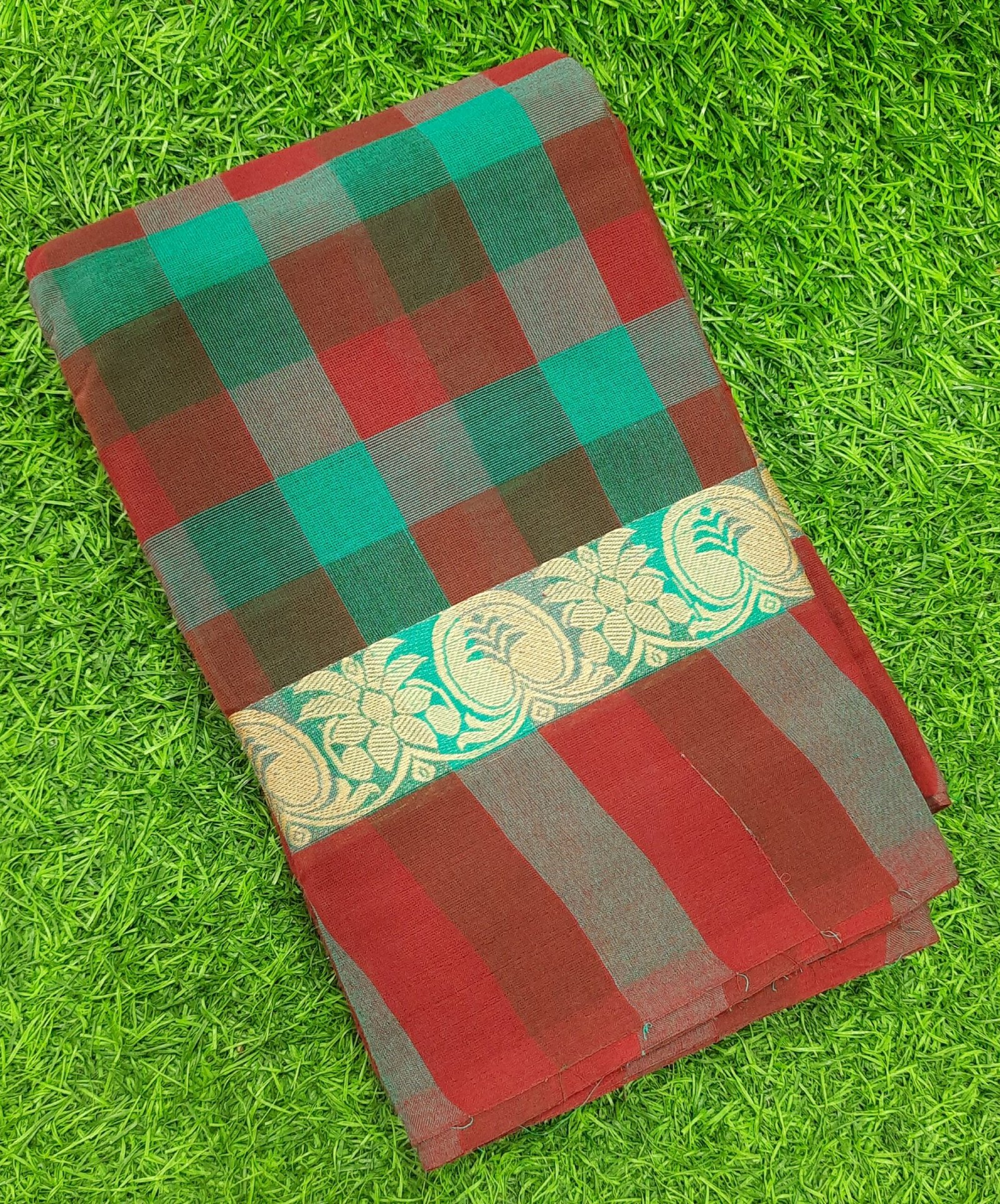 Pure Chettinad Cotton Body Checks Sarees Without Blouse